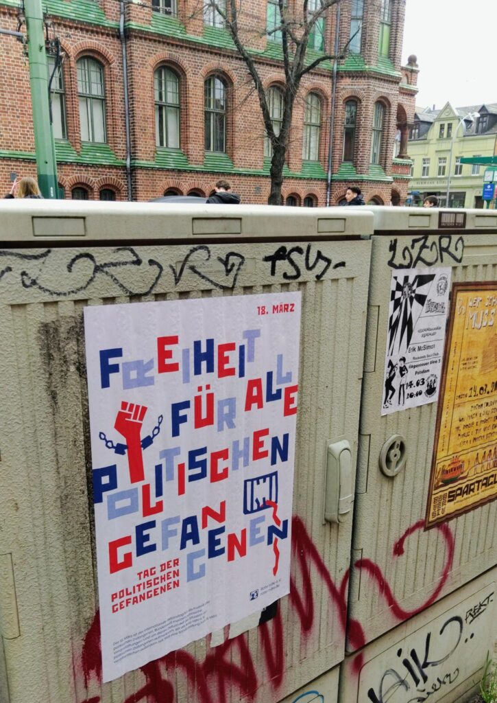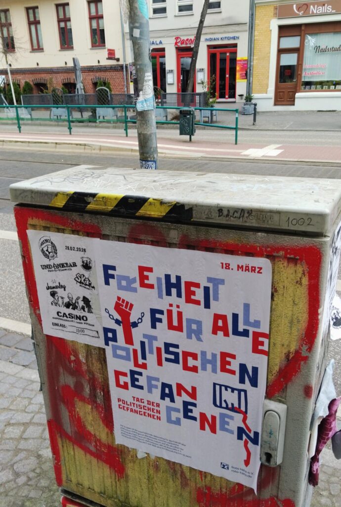 Den 18. März, den Tag der politischen Gefangenen, wollen wir in diesem Jahr für Öffentlichkeitsarbeit nutzen, die auf den ersten Blick wenig mit Knast und politischen Gefangenen zu tun hat. Trotzdem wollen wir diesen Antirepressionstag nutzen, um vor allem junge Menschen in den Kiezen – so wie Potsdam-Babelsberg – zu ermuntern, Polizeiwillkür nicht zu dulden und solidarisch zu sein. Auch damit es gar nicht erst zu Geldstrafen und Knast kommt.
